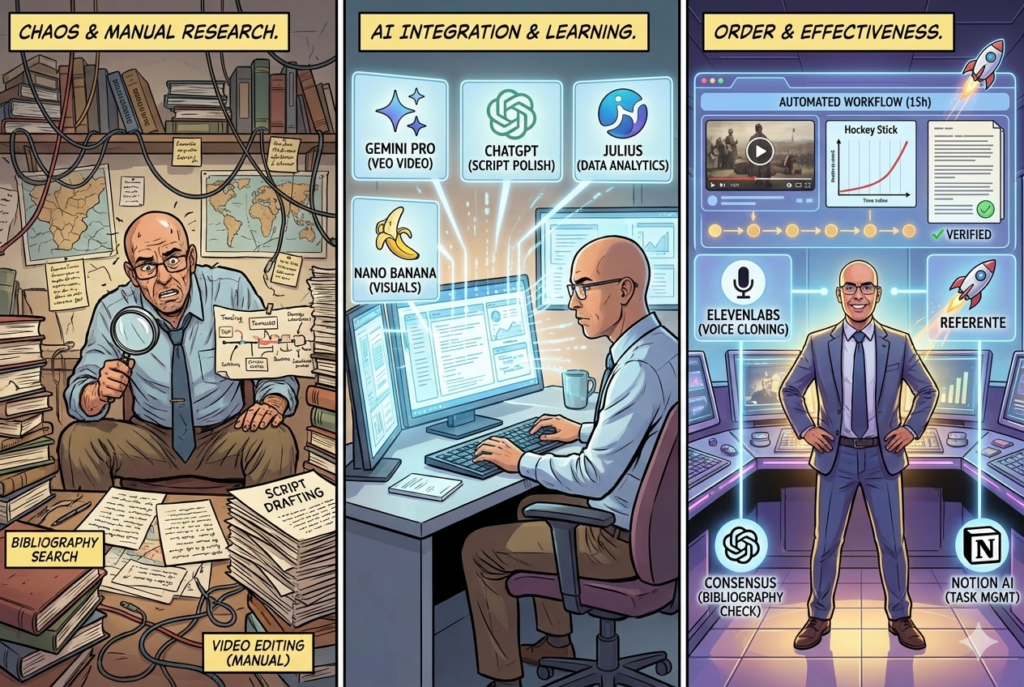 Tras recibir la validación de la academia IA Heroes sobre mi trabajo en el podcast Myska Kubun, he querido documentar la metodología y el «Tech Stack» que ha transformado mi flujo de trabajo. Mi objetivo es demostrar que la Inteligencia Artificial no es solo una herramienta para la rapidez, sino una plataforma para la profundidad y la veracidad. Todo este proceso ha sido potenciado por los conocimientos adquiridos en el curso IA Heroes Pro.