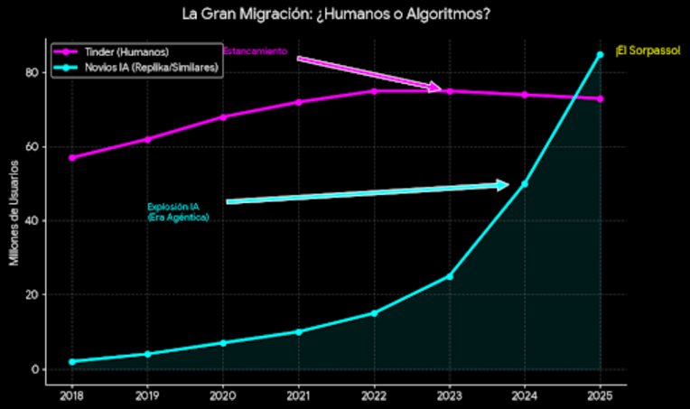 Durante el proceso, nos topamos con el caso de Ayrin y sus réplicas digitales. Lo fascinante —y aterrador— fue ver las curvas de crecimiento.